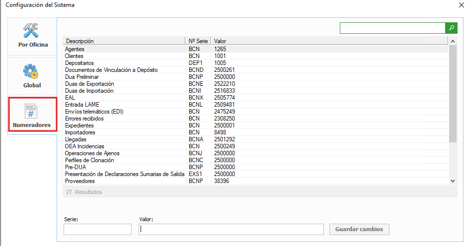 Pinchamos en cada una de las líneas y indicamos en la casilla Valor el numerador con la codificación del nuevo año