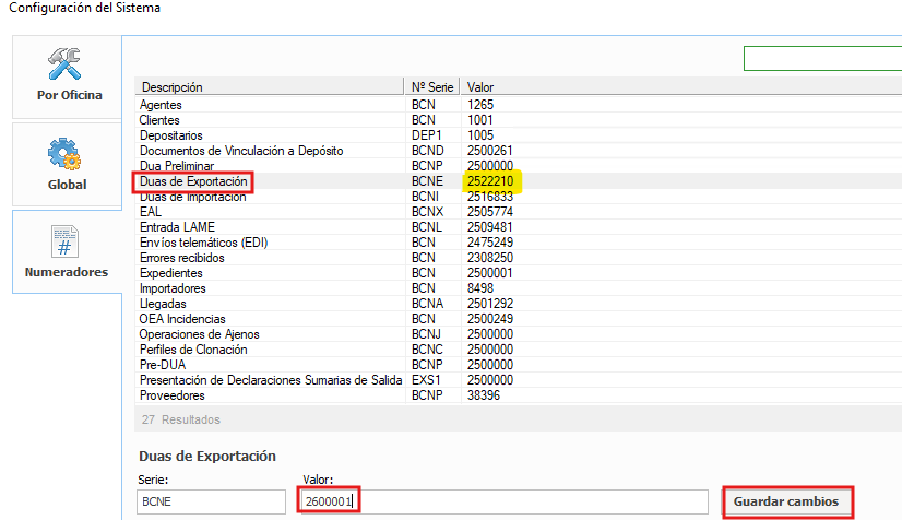 Ponemos el 2600001 y le damos a Guardar Cambios