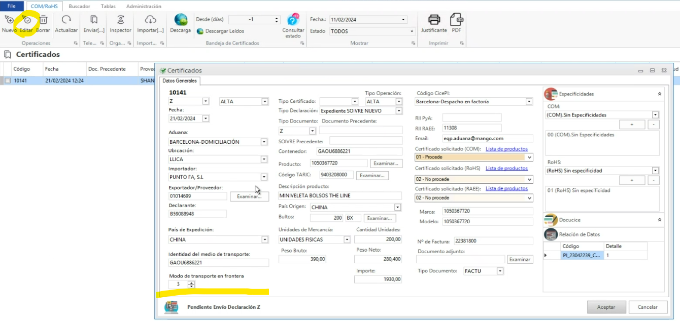 Esto produce un aviso en la AEAT, claro, pero una vez tengáis la necesidad de realizar un despacho a consumo de esas mercancías, el documento se activará para que sea informado en el DUA de importación.