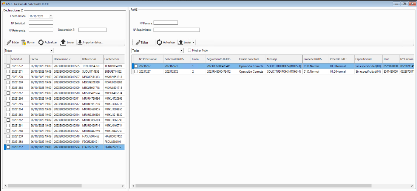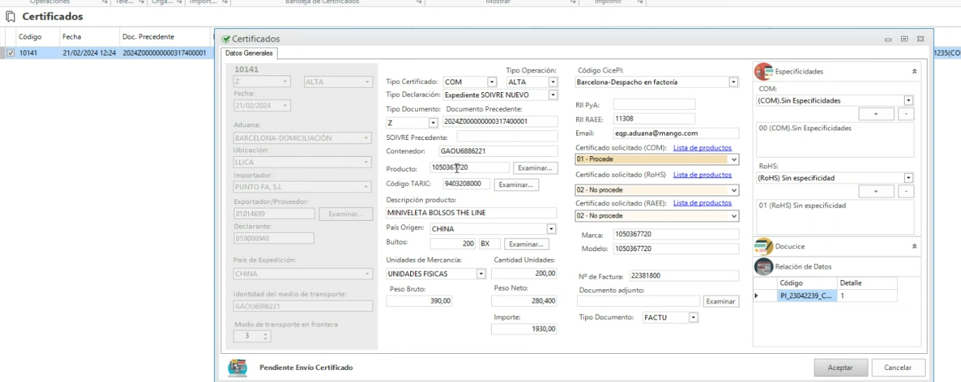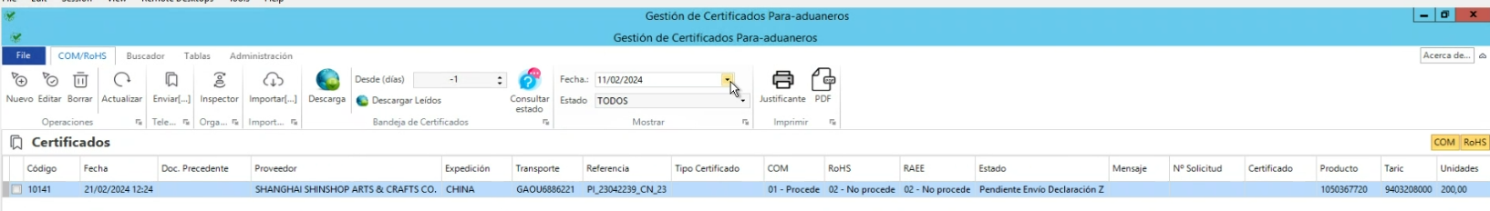 Si es un pedido con 5 líneas, con el mismo Taric y Artículo, se creará una única solicitud con los datos agrupados.