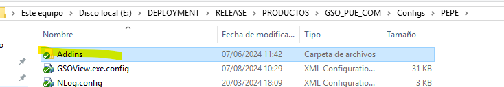 La carpeta Addins va en el empaquetado de Configuración de cada cliente. No en el de las dll