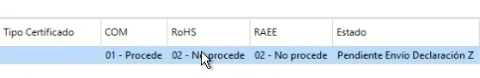 En este caso, Tiene un COM, pero un No procede un Rohs.