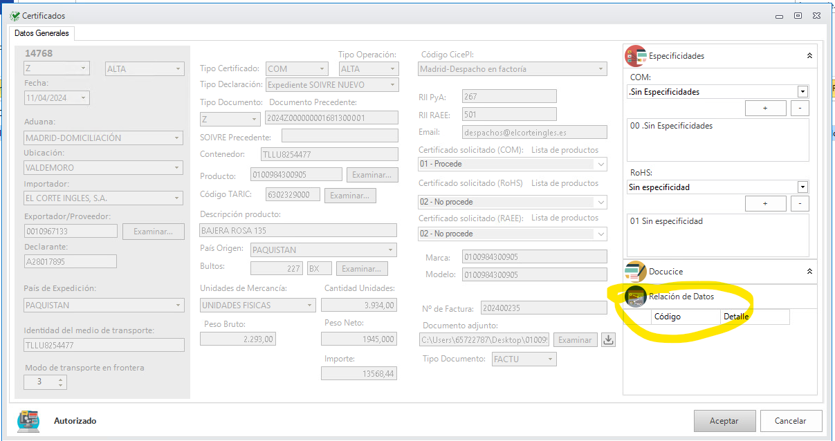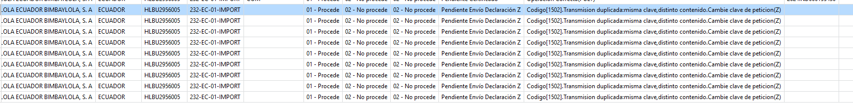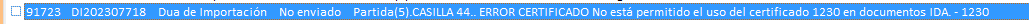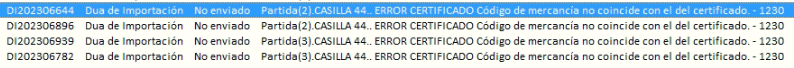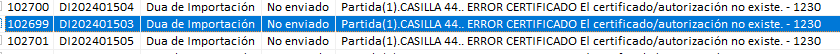 Error Codigo de mercancia no coincide con el certificado 1230: