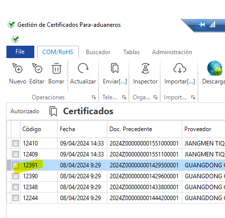 Para esta partida, en dicha tabla si requiere COM, pero no debe estar actualizado. Hay que pasar actualización de la tabla Taric_Inspections