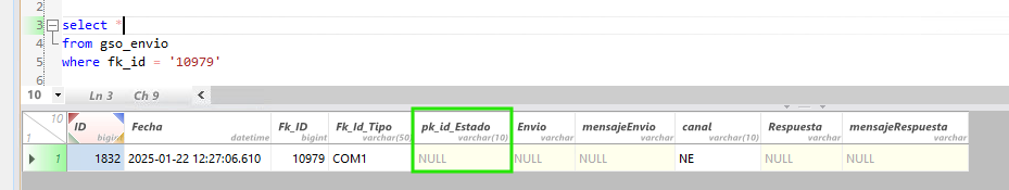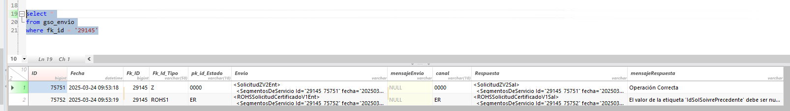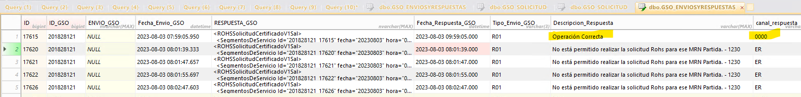 Buscar en la tabla GSO_ENVIOSYRESPUESTAS y modificar las líneas para que el último envío tenga el canal_respuesta a 0000.