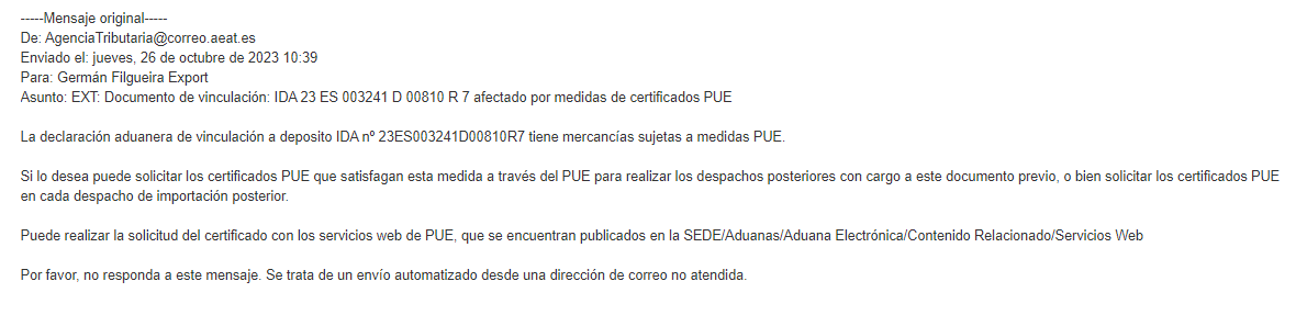 Error "Ningún código taric tiene medida ROS, - PUE: