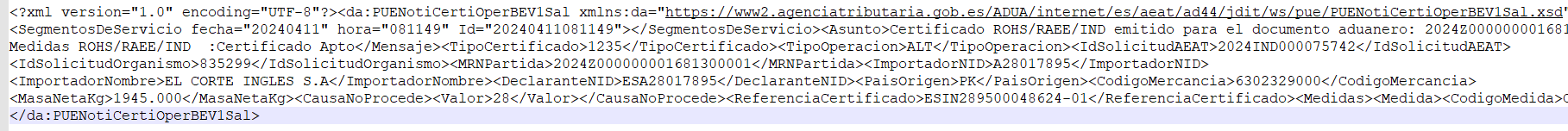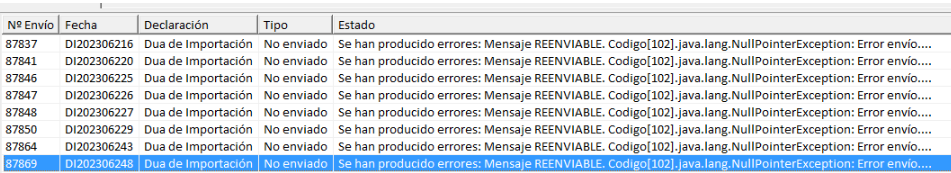 Error al enviar dua de importación con ROHS. Mensaje Reenviable NullPointerException: