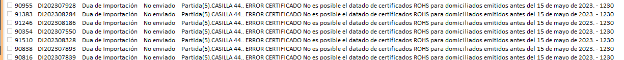 O Error No es posible el datado de certificados ROHS para domiciliados emitidos antes del 15 de mayo de 2023 - 1230