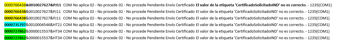 Error El valor de la etiqueta 'CertificadoSolicitadoIND' no es correcto:
