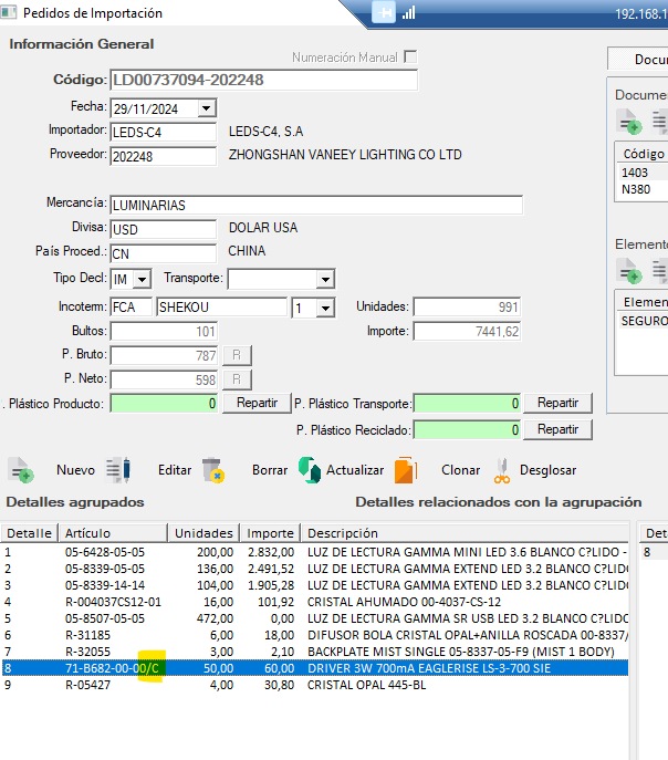 Si sigue el detalle de pedido, desasociarlo (quitarle en el detalle de pedido el atributo 1230) , ya que autorizan una parte del expediente los del ROHS y otra no. En el caso del ejemplo, autorizaron solo la partida 1, las otras no.