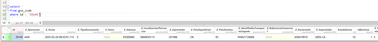 La casilla del GSO Referencia nos indica el pedido o manifiesto. Lo buscamos en TVD