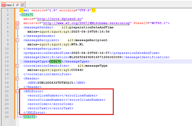 El mensaje de respuesta nos devuelve la Aduana Holandesa está vacío.