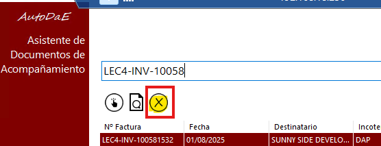 Y cuando os abra la ventana del dae, arriba de todo pegar el nombre de la factura que tenéis que eliminar y darle a buscar