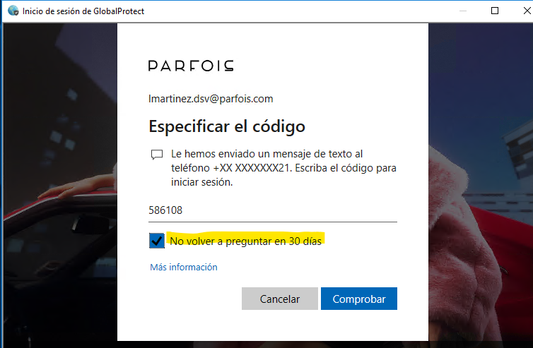 Poner usuario y contraseña de nuevo. Y enviará un SMS al móvil correspondiente: