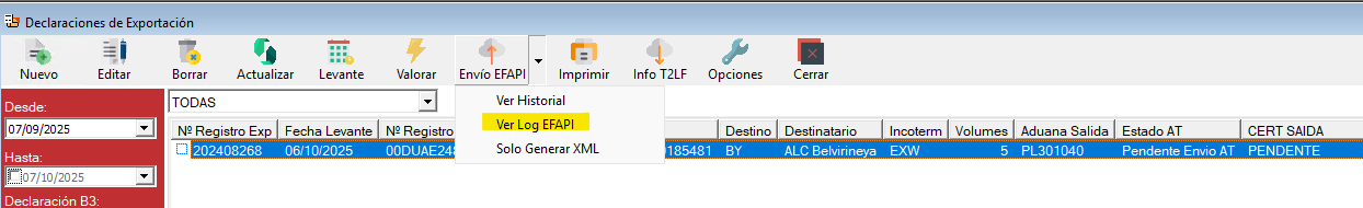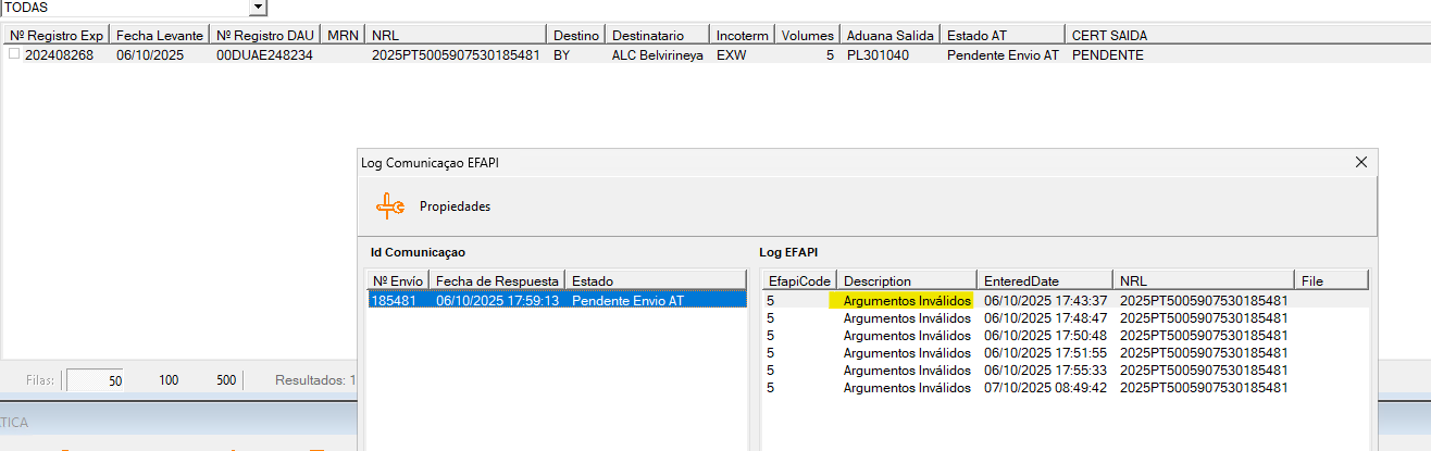 Cuando tengais un error con el envío, debéis revisar el "Ver Log EFAPI"