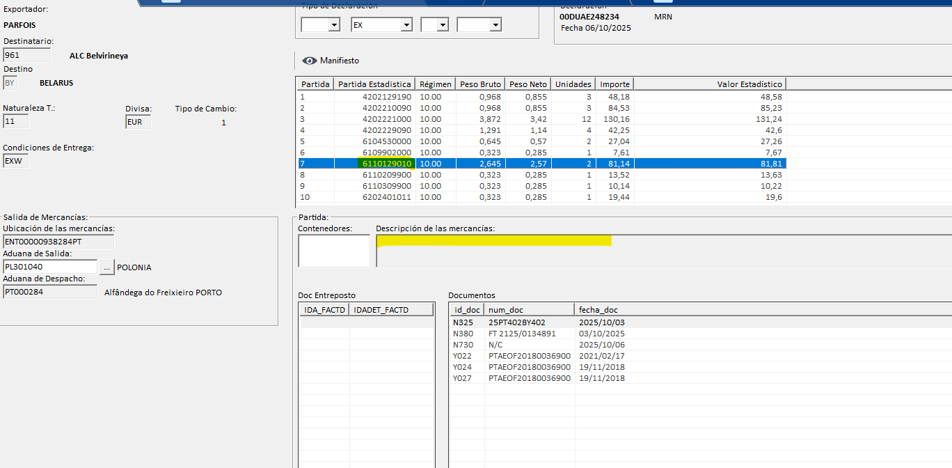 La línea que NO tenga descripción, indicará que ese código pautal NO está dado de alta en TVD. Darlo de alta y volver a enviar