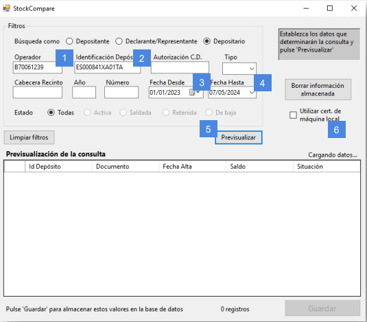 Ponemos las fechas desde y hasta y le damos a Previsualizar. En cuanto estén los datos mostrados en la parte de abajo, le damos a Guardar.