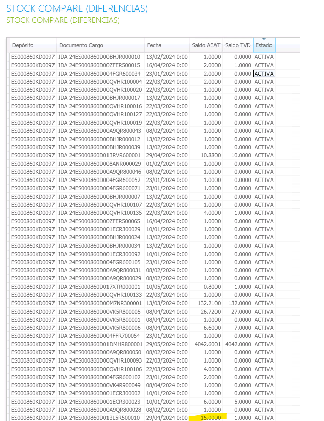Una vez guardados los datos, vamos a mynbou y ejecutamos la consulta de STOCK COMPARE (DIFERENCIAS)