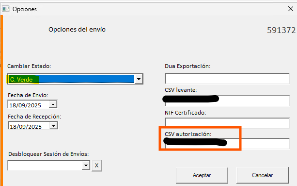 Seleccionar C.Verde e indicar el CSV en CSV autorización y darle a aceptar