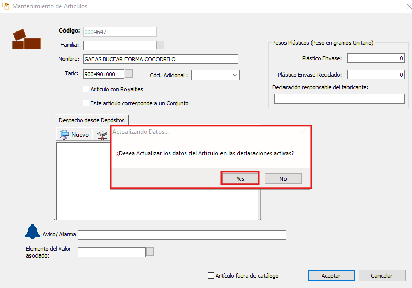 Cambiar Taric a un Artículo desde TVD