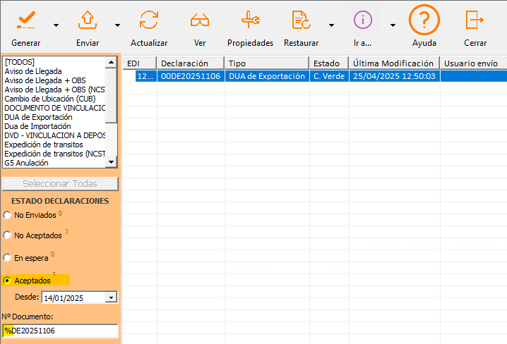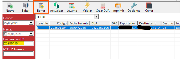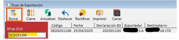 Eliminar DUA Exportación No Recapitulativo en TVD