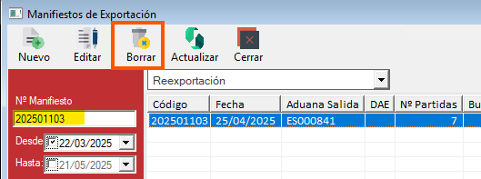 4) Eliminar Manifiesto: Ir a Manifiestos y Borrar: