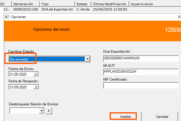 Cambiar Estado a "No enviado" y darle a Aceptar: