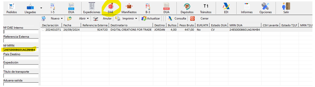 1) Pegamos el MRN del DAE en la pestaña DAE