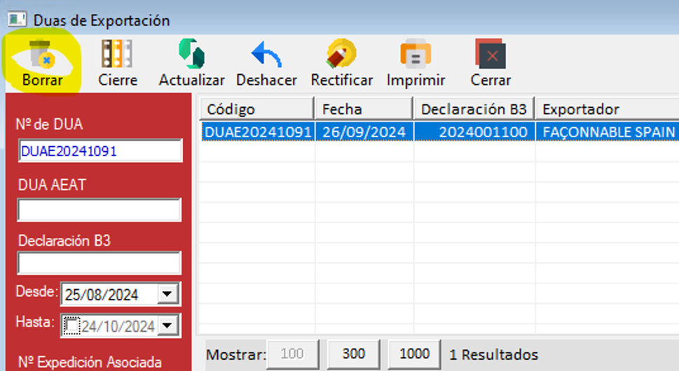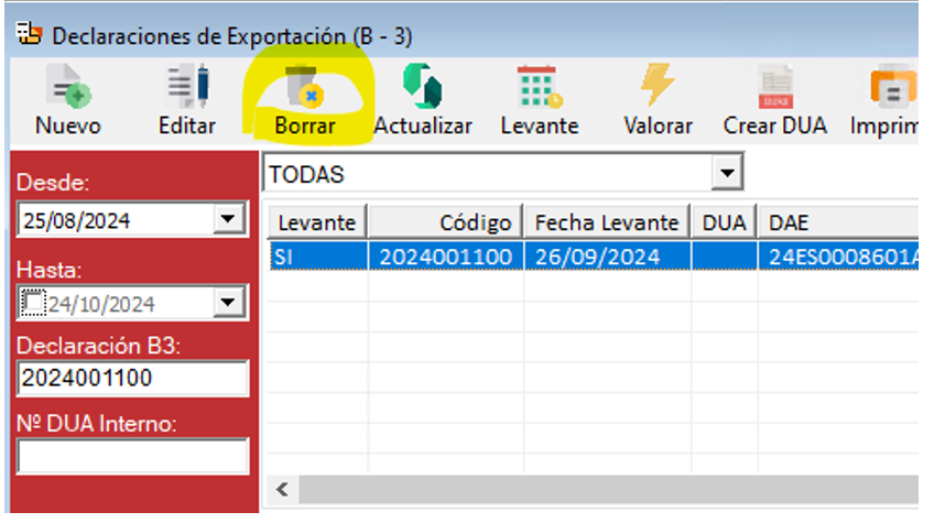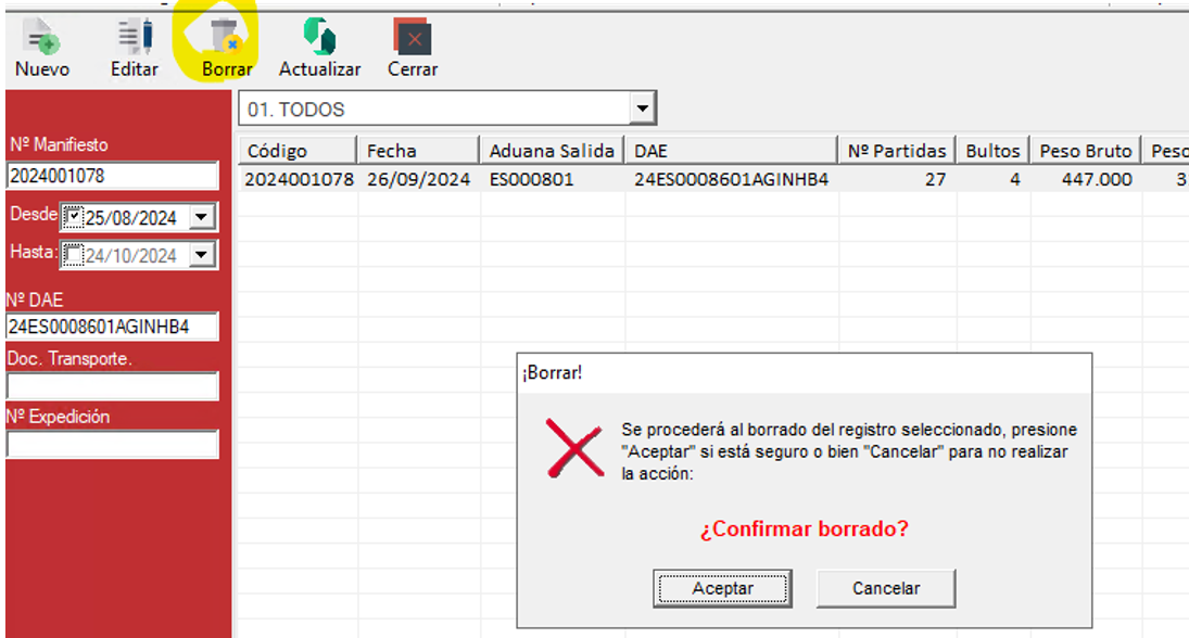 Vamos a la ventana de Manifiesto y le damos a Borrar: