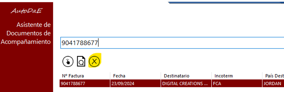 Y buscamos la factura y le damos a la X para eliminar la factura.