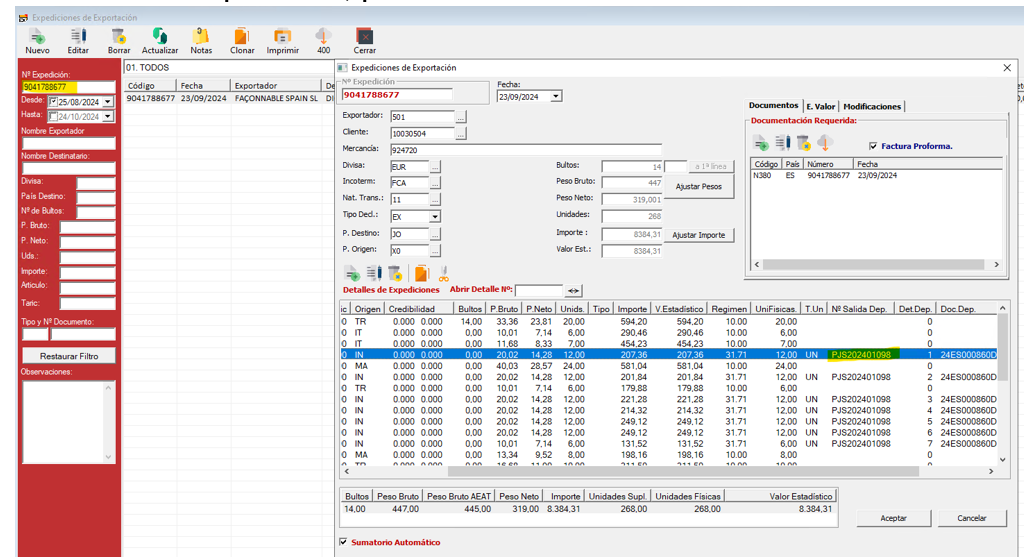 Vamos a la Expedición, para ver el número de la salida PJS…