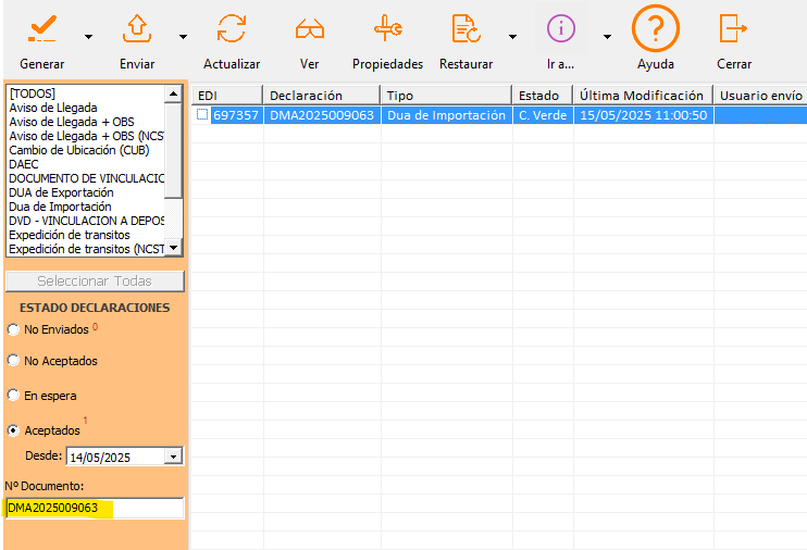 1) Cambiar estado del DUA : Vamos a EDI y buscamos el código del dua, el código interno, no el MRN