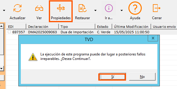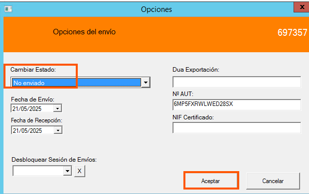 Vamos a Propiedades --> Sí --> Cambiar Estado "No enviado" y Aceptar