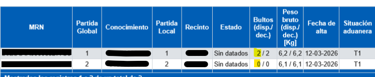 Es porque en una de las partidas no se ha indicado el tipo de bultos.