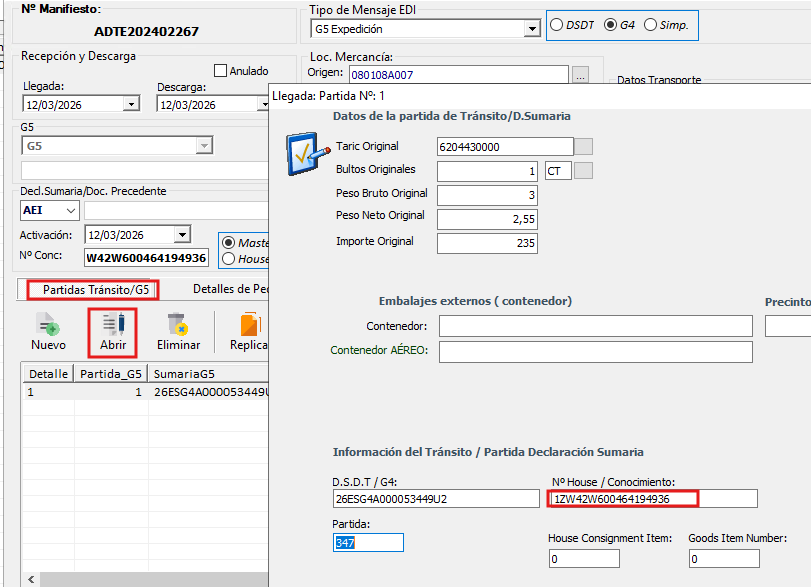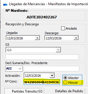 Para indicar House, tendreis que indicar en la cabecera del manifiesto en Nº Conc lo que aparezca en la web como el ID TRANSPORTE.
