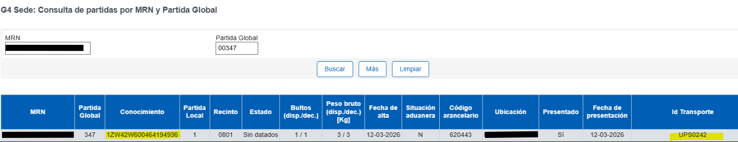 Error al enviar G5 Expedición: Tipo de partida MI/HI de G5 inconsistente con el tipo de partida de G4 en origen
