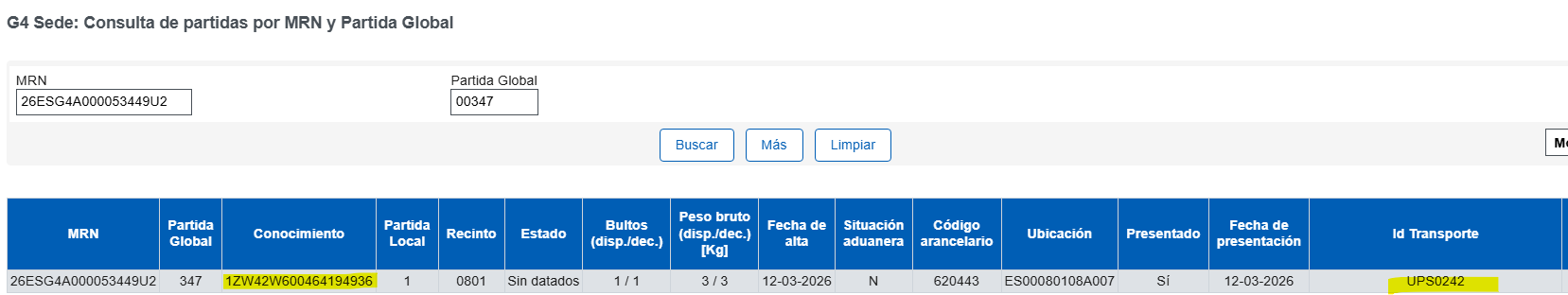 Error al enviar G5 Expedición: Tipo de partida MI/HI de G5 inconsistente con el tipo de partida de G4 en origen