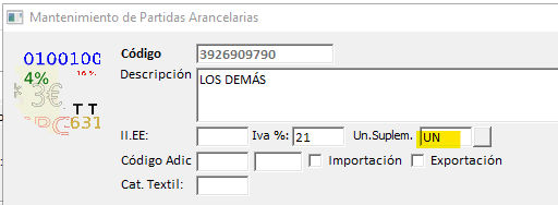 Si no lo requiere, ir en TVD al Mantenimiento de ese Taric y dejar vacía la casilla de Un.Suplem