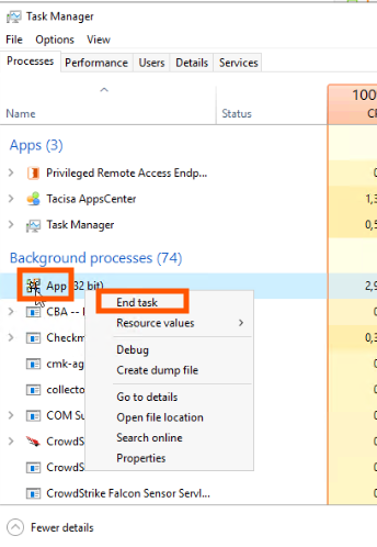Buscamos App.exe con el icono de TVD y le damos botón derecho "End Task"