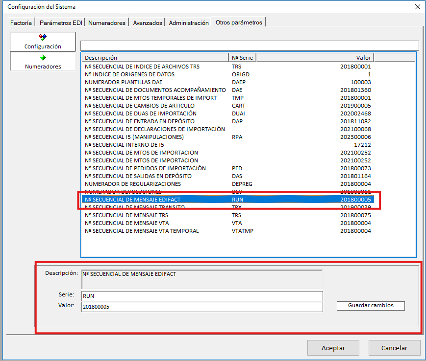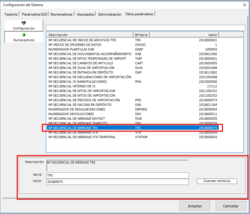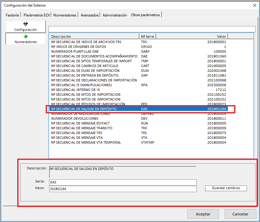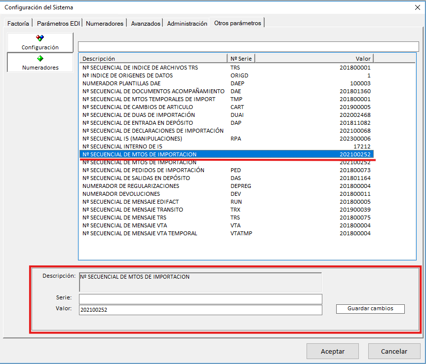 * Debe tenerse en cuenta que la modificación de numeradores motivado por el cambio de año, se realizará una vez finalizadas las operaciones del año anterior.