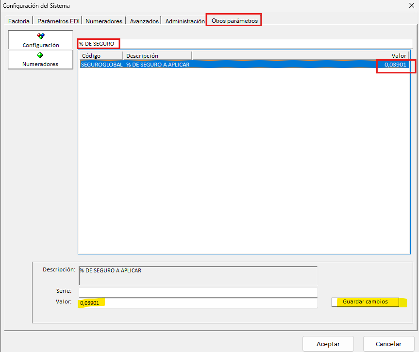 Luego pinchais en la línea y abajo de todo modificais el valor y le dais a "Guardar Cambios" y Aceptar