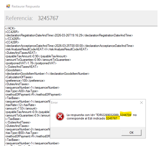 Si al intentar restaurar nos da este error "La respuesta no corresponde al EDI indicado"