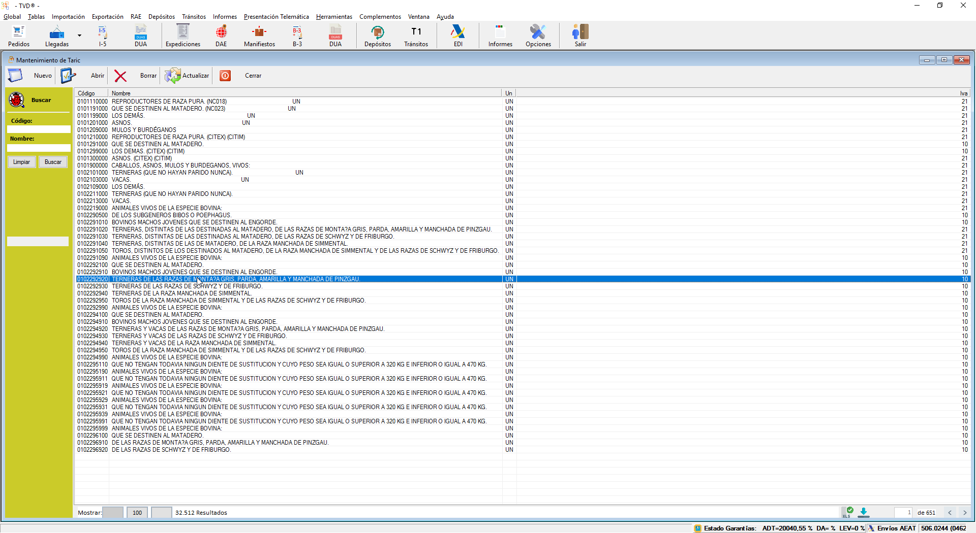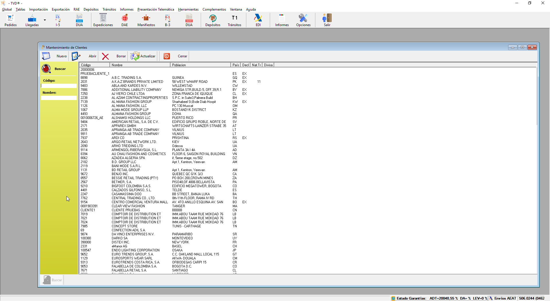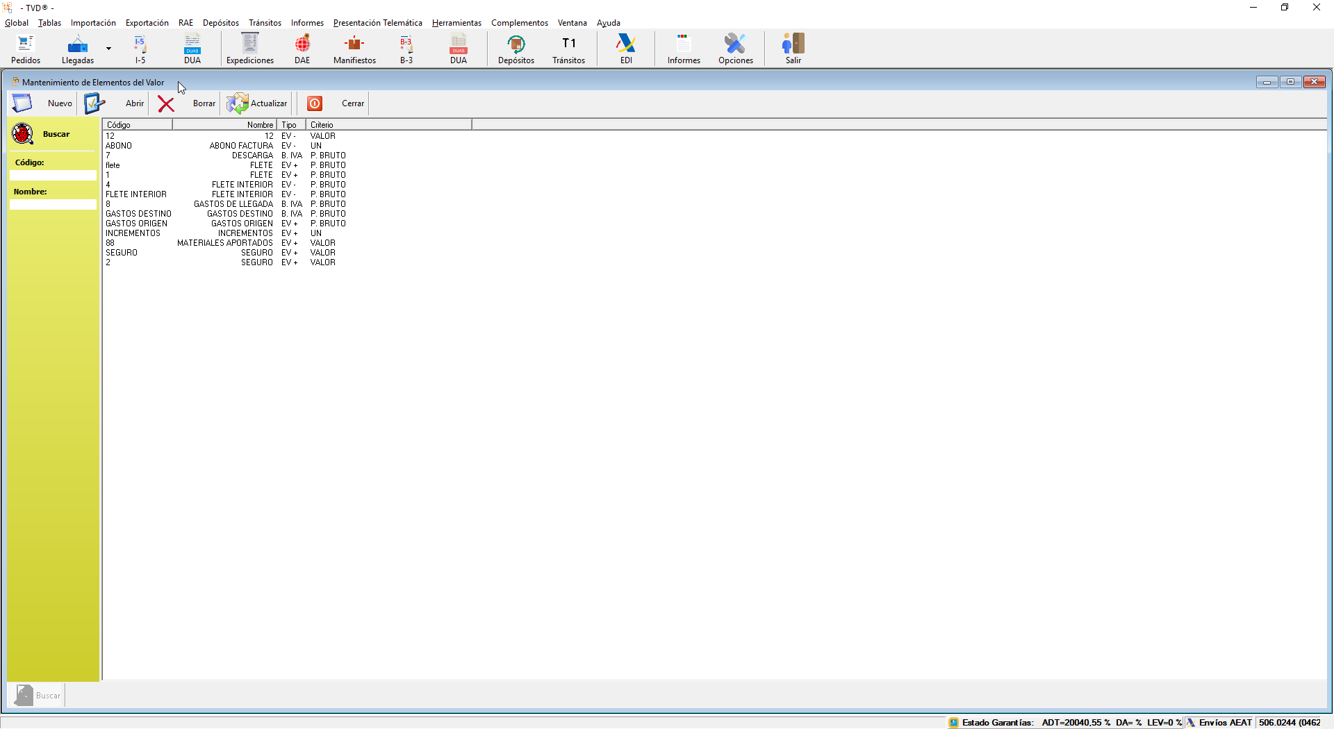 La pantalla Mantenimiento de Aduanas permite gestionar el catálogo de recintos aduaneros (puertos, aeropuertos, carreteras, depósitos, etc.) que utiliza TVD en todas sus operaciones de importación, exportación y tránsito.