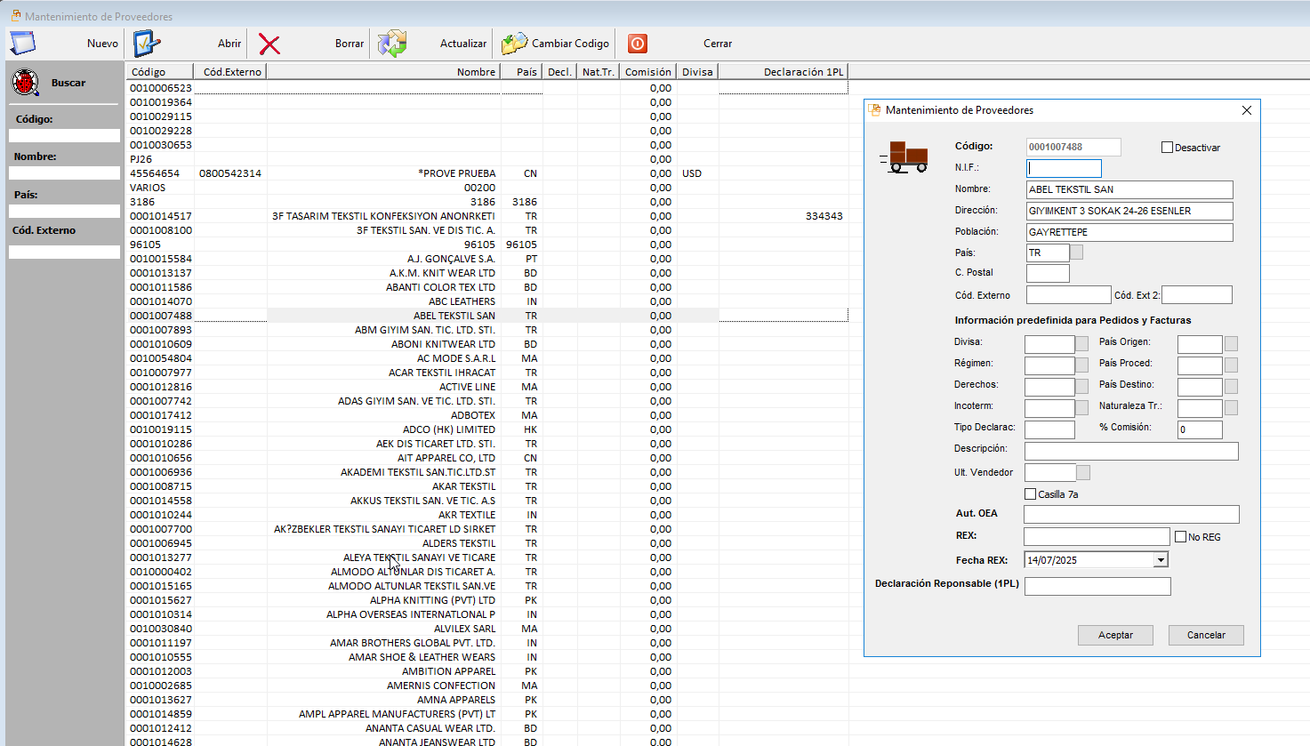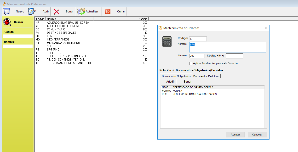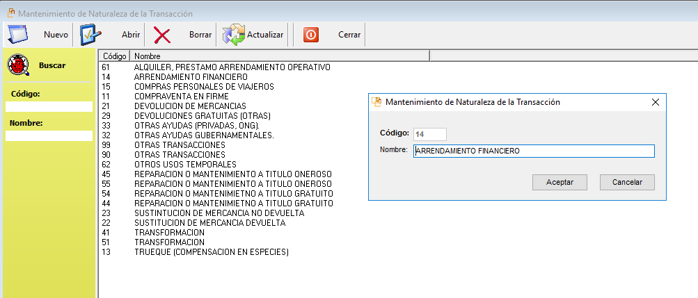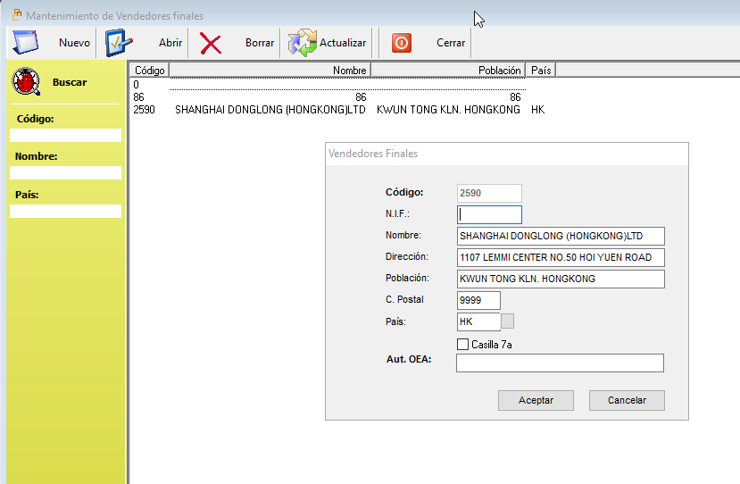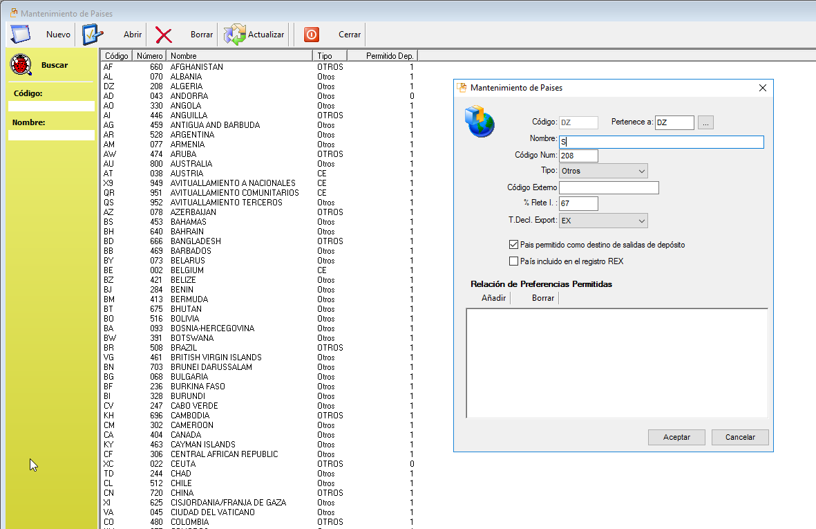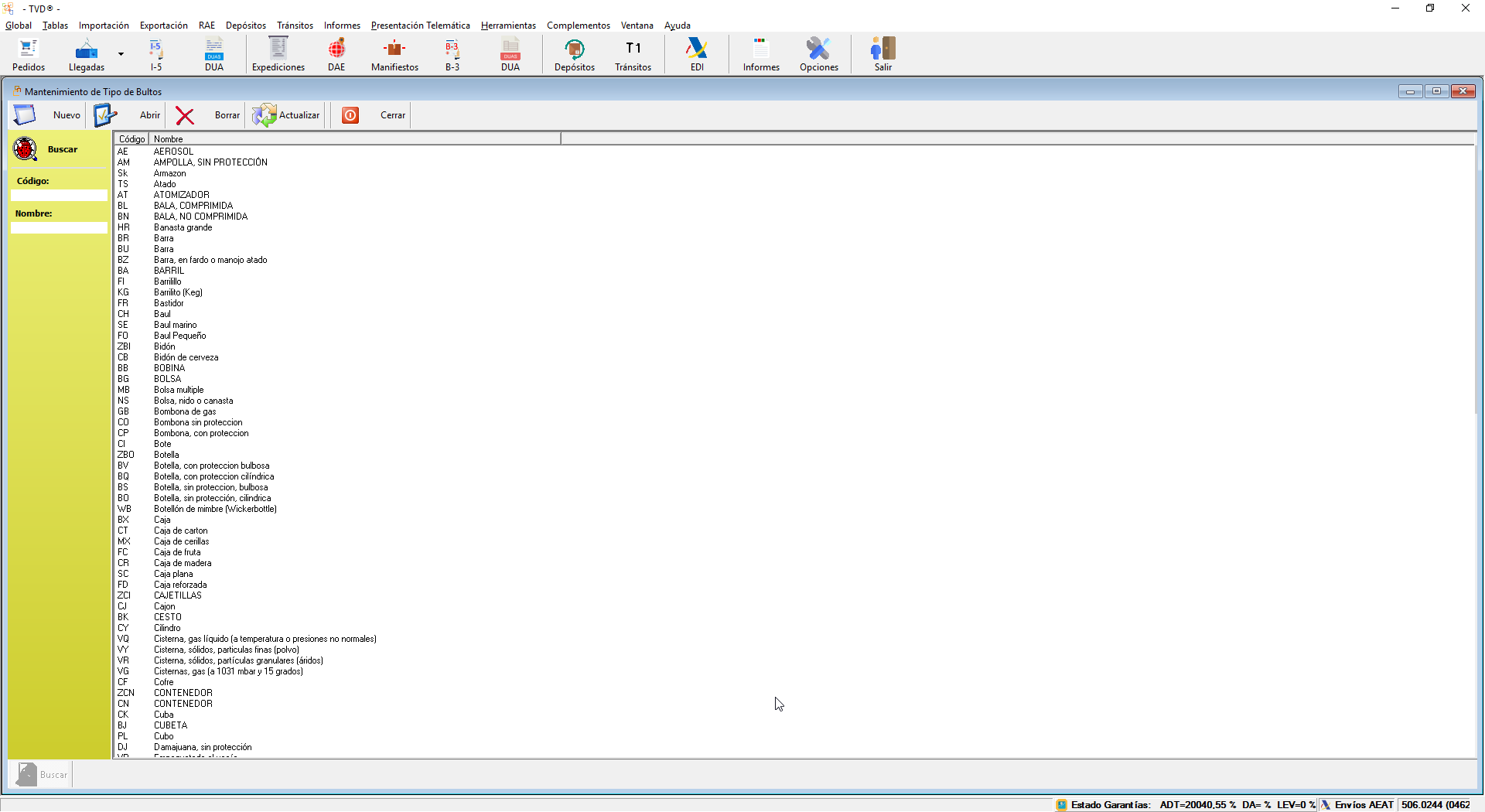 | 🔒 Cerrar | Cierra la ventana de Mantenimiento de Aduanas. |