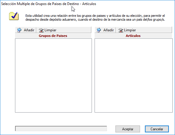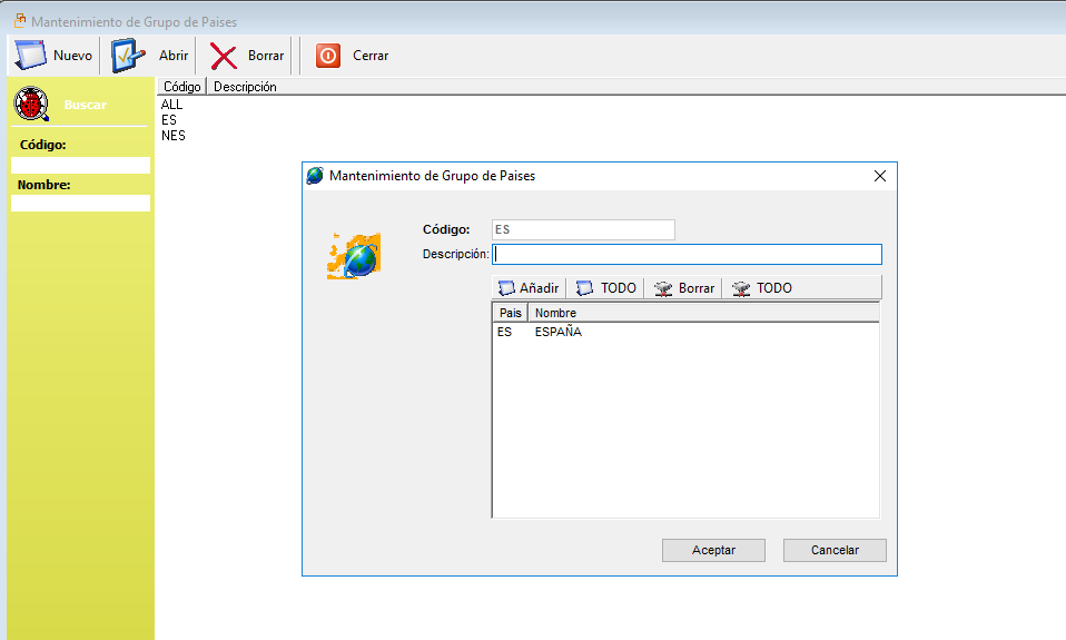 | Aceptar | Guarda el grupo y sus países asociados, y vuelve a la ventana principal. |