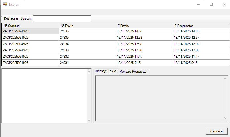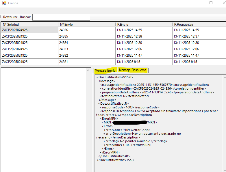 Y si pinchais en una de las líneas os mostrará el Mensaje Envío y el Mensaje de respuesta o Error: